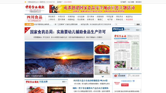 《中国食品报》1984年创刊,中国轻工业联合会(原轻工部)主管,中国食品行业及相关领域的一张专业日报。 《中国食品报》的定位:宣传党和国家发展食品产业的方针、政策,介绍国内外食品企业的先进经验,传播食品行业各种信息,指导和促进食品生产、流通、消费健康发展。 《中国食品报》行业领域:食品加工生产企业、食品机械与包装企业、食品原辅材料及食品添加剂企业、大中型食品商场超市、食品市场、食品经销商、餐饮界、相关政府职能部门、相关食品行业协会、各大科研机构、大专院校以及大众消费者。 《中国食品报四川专刊》、《中国食品报网四川专区》: 中国食品报主办,宣传和服务四川食品行业以及延伸领域专业权威的报网一体的传媒平台。 大力宣传四川发展食品产业的政策举措,介绍四川打造食品品牌的先进经验,传播四川美食文化以及行业最新资讯,充分发挥媒体的公信力、影响力和传播力,舆论监督食品领域制假售假等违法行为,促进四川食品行业生产、流通、消费健康发展。