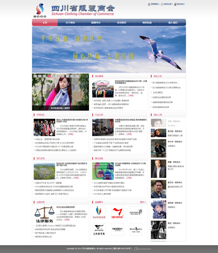 四川省服装商会以平等互助,资源共享,大爱奉献,同心共赢为十六字方针。企业家们可以充分表达自己的意愿和见解,使大家在互利共赢的基础上让我们的服装事业的前景更加广阔、未来更加美好。 四川省服装商会是一个宽广的多元化的平台,一个让蜀地的从事服装行业的企业家们能够做到资源共享、利益互惠的平台;一个融汇了乡情、友情和商情的平台;一个把握今天、创造美好未来的平台。 商会目前发展会员200余家,其中拥有柒牌,七匹狼,卡宾,人为服饰,慧欣服饰,等一大批实力雄厚、资产优良、信誉良好的优秀企业。