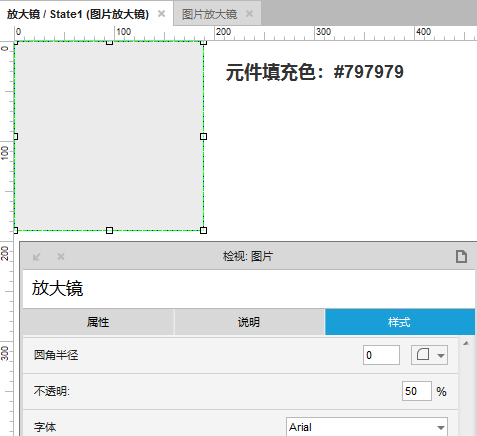 放大镜:矩形元件,填充颜色,设置不透明度,然后转换为图片。