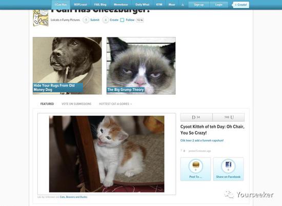 分享宠物图片和“梗”的网站, 2007 年顶峰时候日点击量 150 万。