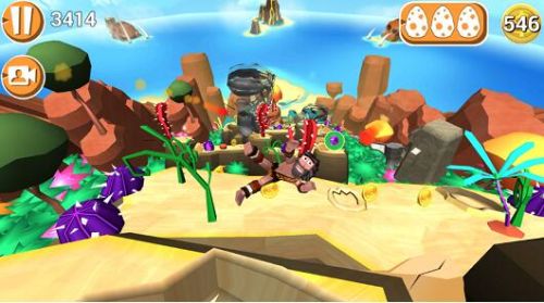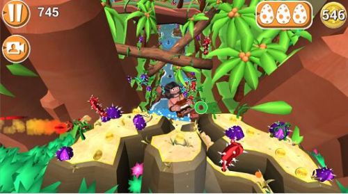 异曲同工,《faily tumbler》是由开发者spunge games制作的手游,也是类似于《神庙逃亡》的纵向酷跑类游戏,故事背景设定在远古时代,主角为了生存寻找食物,在火山口上法相动物蛋想要取食,结果误将火山口边缘的山石砸开,导致火山溶液喷出。就着这个时候,玩家做好准备开始游戏。